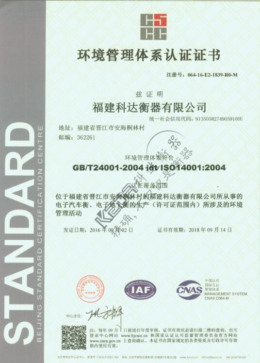 科達地磅通過環境管理體系認證